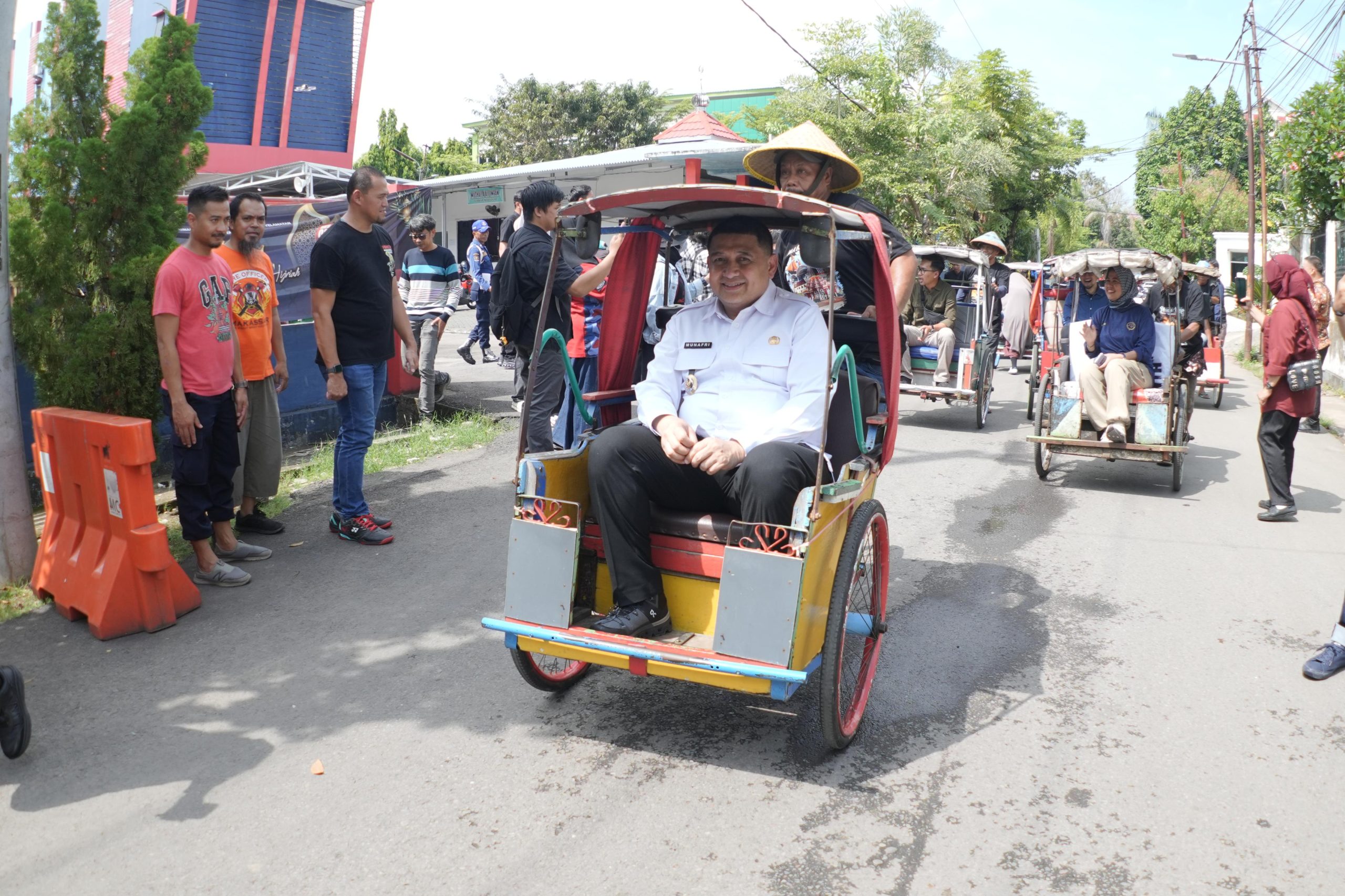 Setelah sidak di Damkarmat, Bima Arya dan Munafri melanjutkan kunjungan dengan naik becak ke Jalan Penghibur. Mereka meninjau langsung Makassar Creative Hub di kawasan Anjungan Pantai Losari. Ruang kreatif publik ini diharapkan mendukung aktivitas anak muda Makassar.