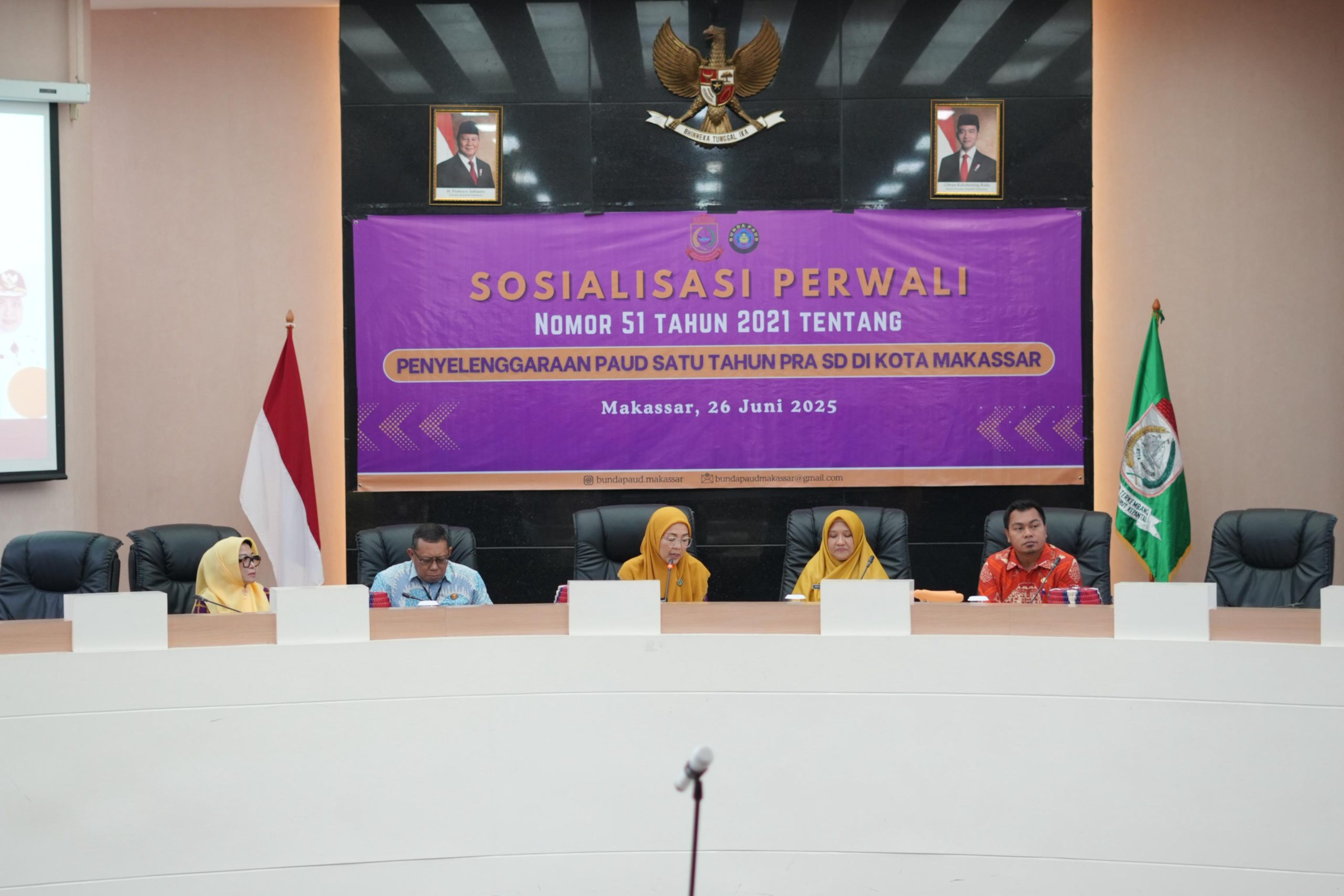 SudutMakassar.id, MAKASSAR – Bunda PAUD Kota Makassar, Melinda Aksa, mendorong percepatan implementasi Peraturan Wali Kota (Perwali) No. 51 Tahun 2021 tentang Penyelenggaraan Pendidikan Anak Usia Dini (PAUD) Satu Tahun Pra-SD, melalui kegiatan sosialisasi yang digelar di Ruang Sipakatau, Kamis (26/6/2025).