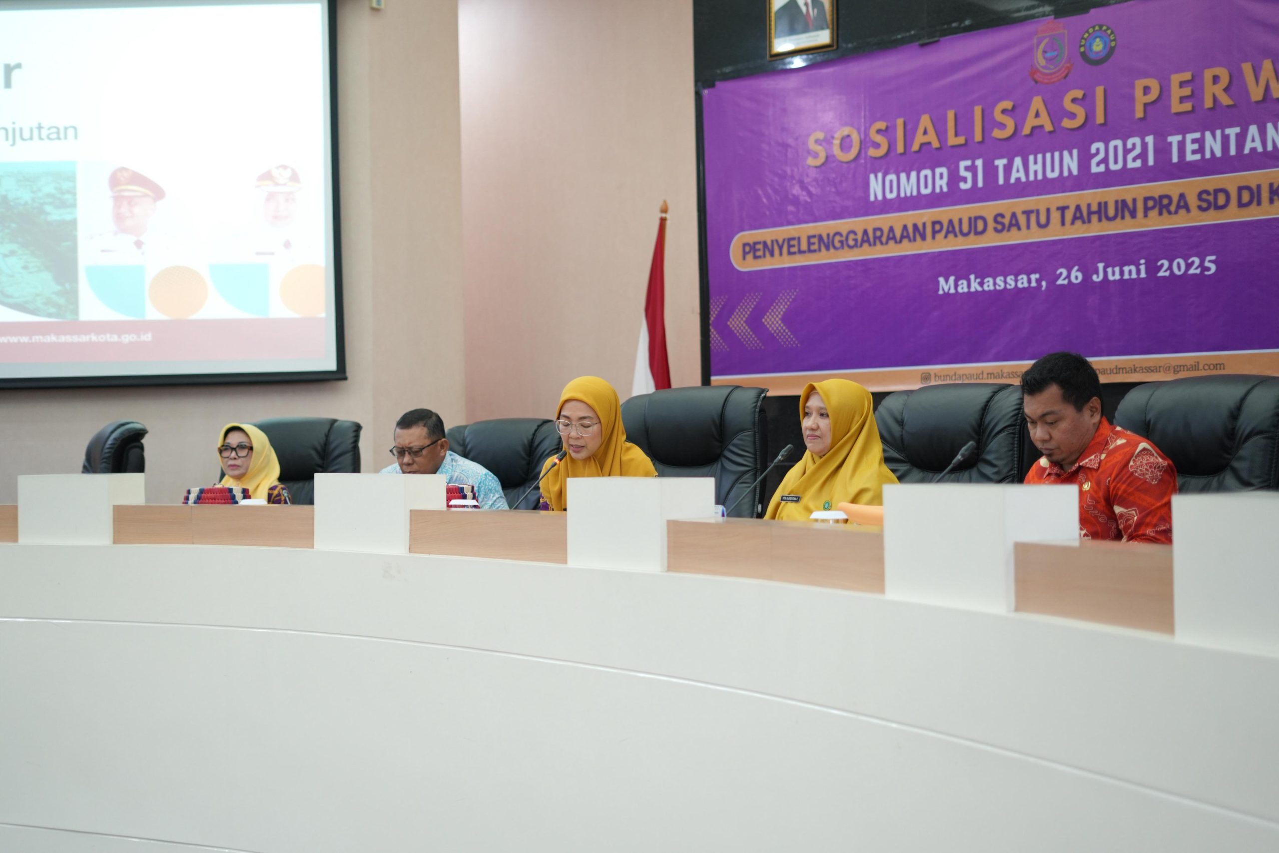 SudutMakassar.id, MAKASSAR – Bunda PAUD Kota Makassar, Melinda Aksa, mendorong percepatan implementasi Peraturan Wali Kota (Perwali) No. 51 Tahun 2021 tentang Penyelenggaraan Pendidikan Anak Usia Dini (PAUD) Satu Tahun Pra-SD, melalui kegiatan sosialisasi yang digelar di Ruang Sipakatau, Kamis (26/6/2025).