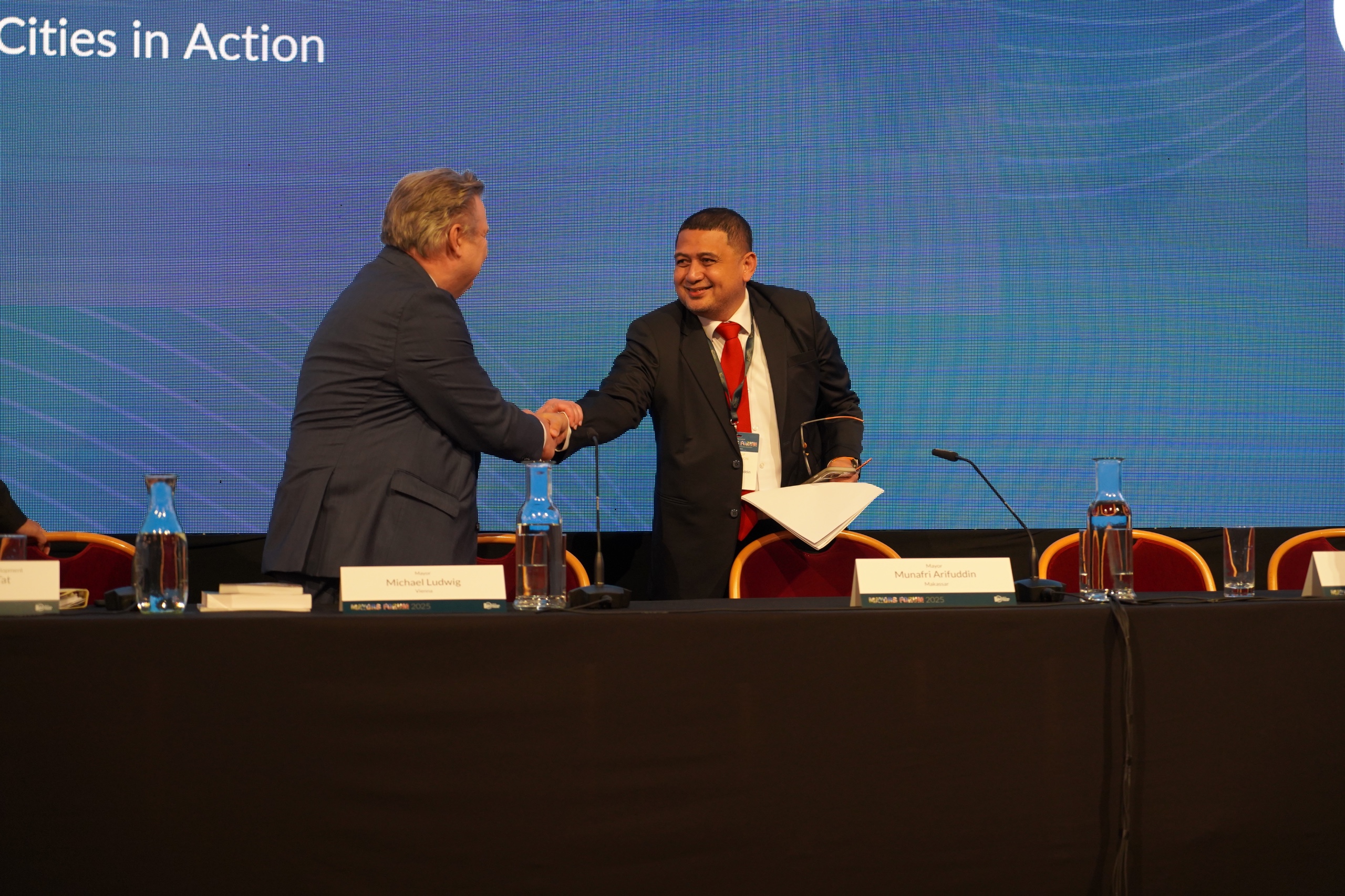 “Merupakan kehormatan bisa berbagi panggung bersama para pemimpin kota dunia. Tantangan kita serupa, dan solusi harus kontekstual dan inklusif,” ujar Munafri membuka pidatonya.