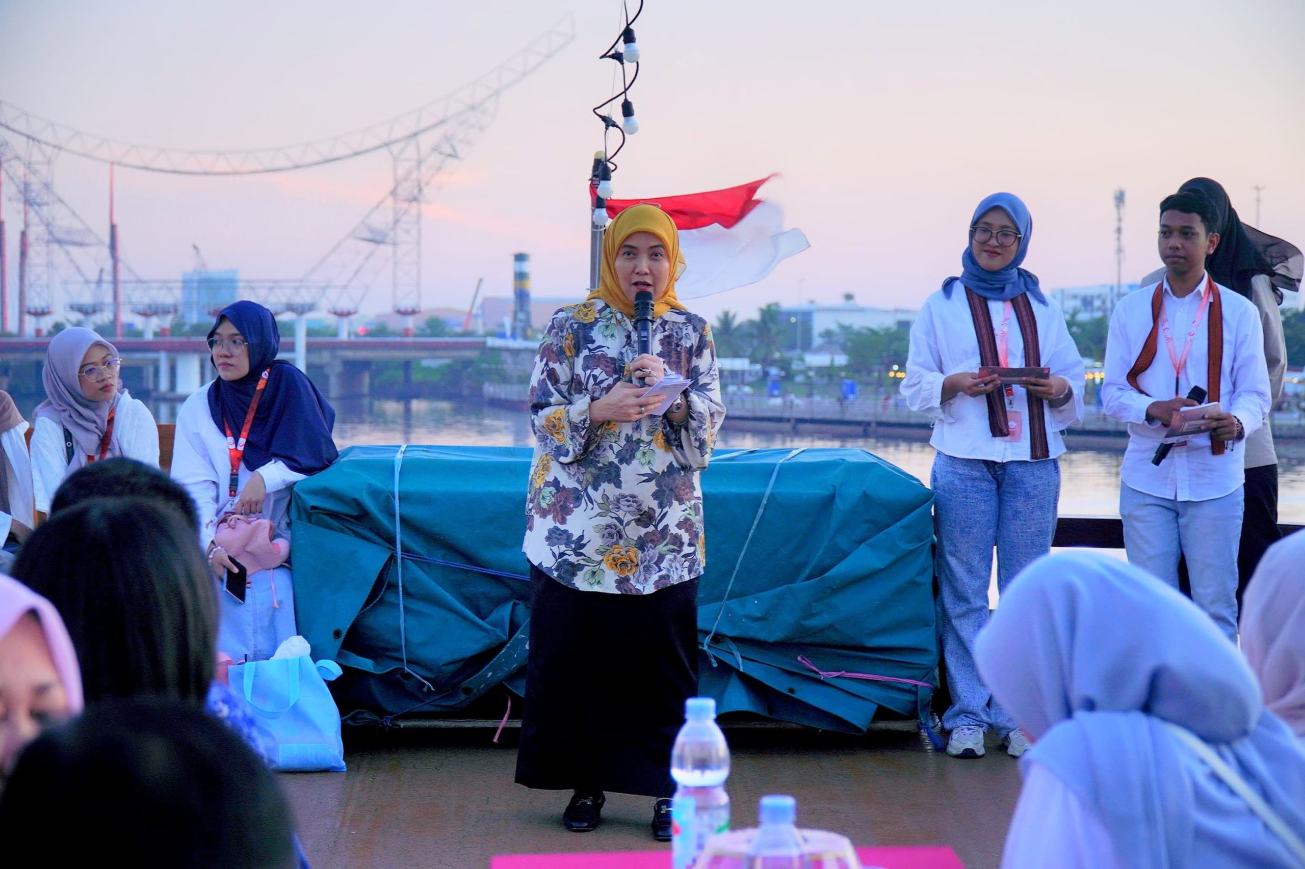 Kegiatan ini dilangsungkan di atas kapal Phinisi, berlayar santai saat matahari terbenam di Anjungan Pantai Losari, Jl. Penghibur, Makassar. Suasana sunset sailing berpadu dengan semangat anak muda yang menyuarakan kampanye pelestarian budaya, kepemimpinan, dan lingkungan.
