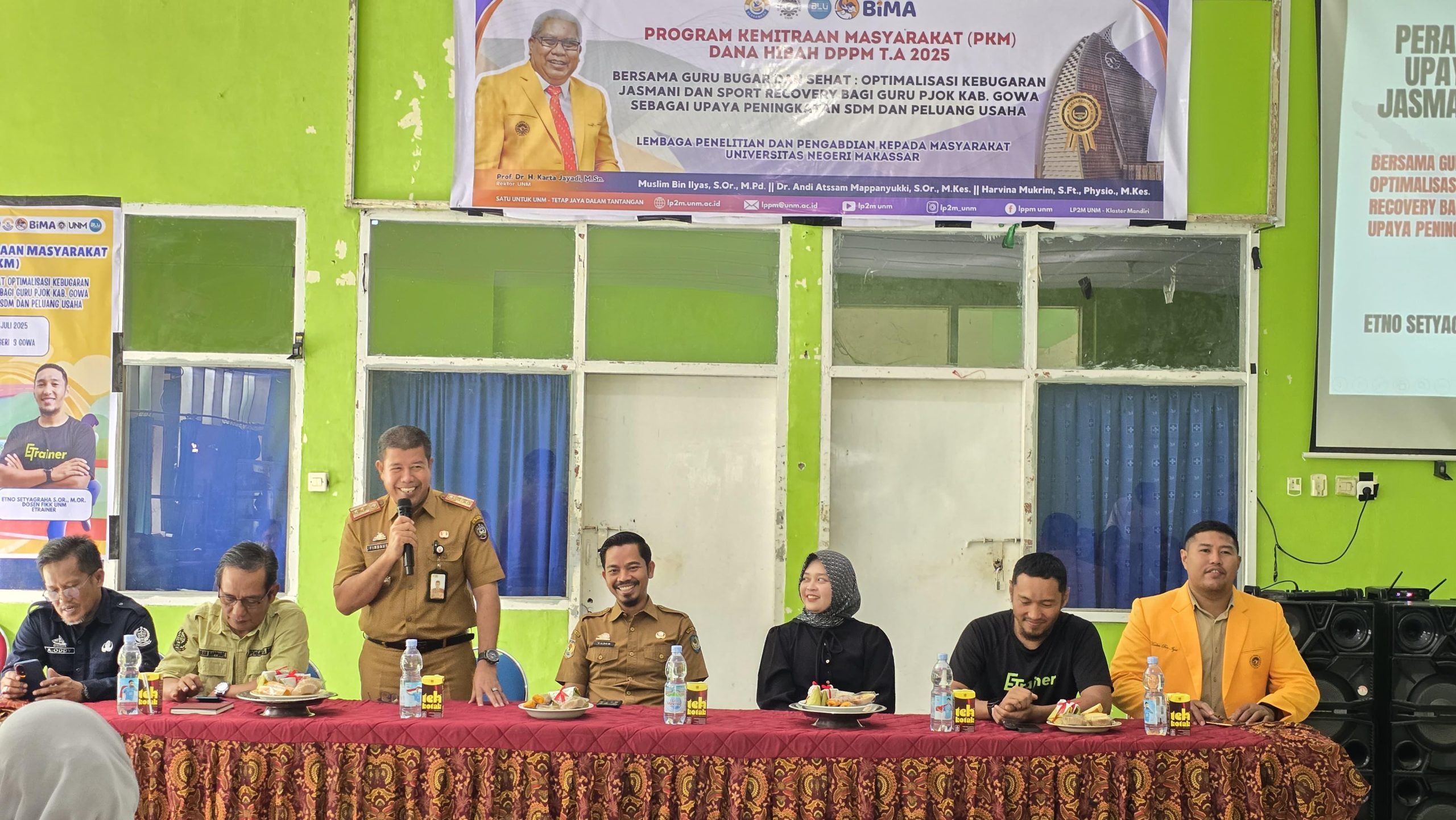 Dengan mengusung tema “Guru Bugar dan Sehat: Optimalisasi Kebugaran Jasmani dan Sport Recovery sebagai Upaya Peningkatan SDM dan Peluang Usaha”, acara ini diikuti oleh puluhan guru PJOK dari seluruh Kabupaten Gowa.