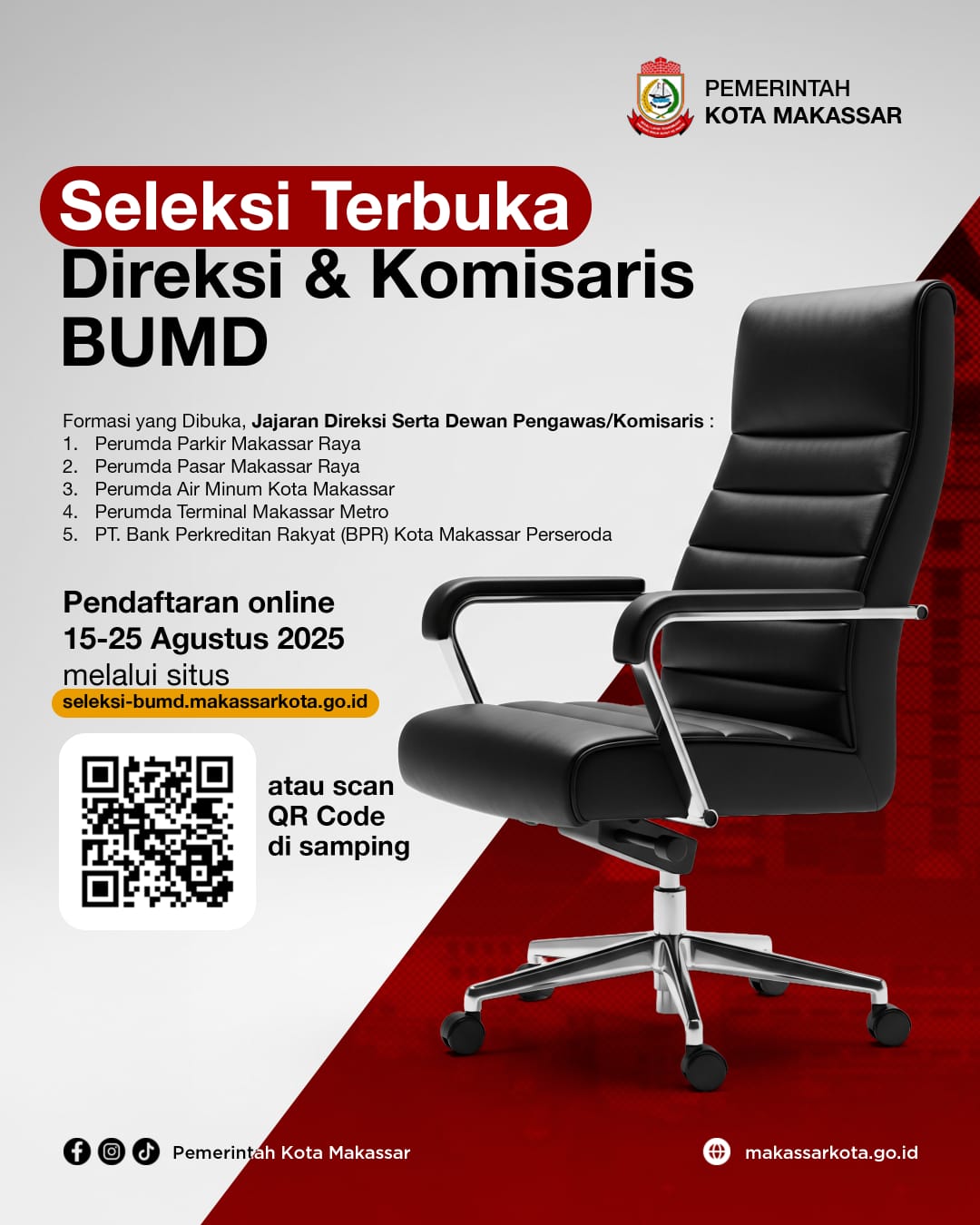 Seleksi ini menjadi langkah Pemkot Makassar untuk menjaring pimpinan BUMD yang profesional, transparan, dan berintegritas, guna memperkuat kinerja serta kontribusi BUMD terhadap pembangunan daerah.