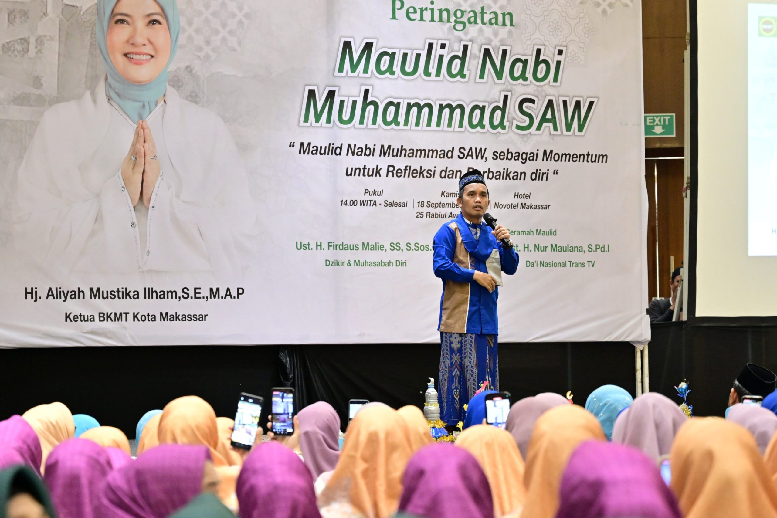 “Alhamdulillah, kita dipertemukan dalam suasana penuh berkah ini. Momentum Maulid Nabi SAW bukan sekadar perayaan, tetapi pengingat bagi kita semua untuk terus merefleksi diri dan menjaga kebersamaan membangun Kota Makassar,” ujar Aliyah Mustika Ilham.