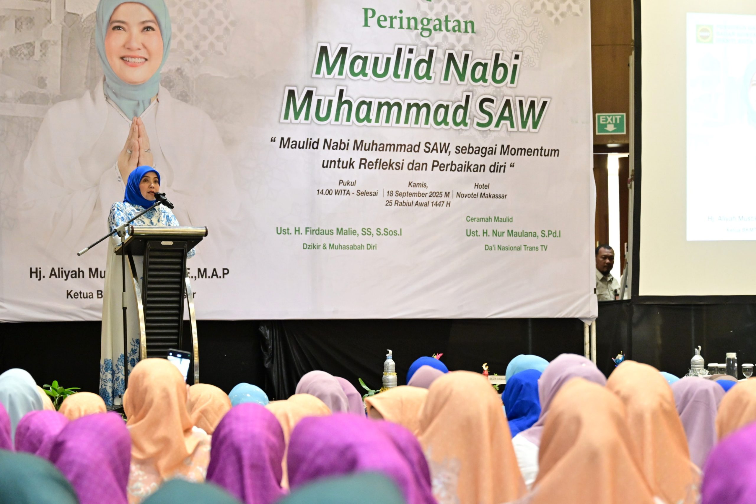 “Alhamdulillah, kita dipertemukan dalam suasana penuh berkah ini. Momentum Maulid Nabi SAW bukan sekadar perayaan, tetapi pengingat bagi kita semua untuk terus merefleksi diri dan menjaga kebersamaan membangun Kota Makassar,” ujar Aliyah Mustika Ilham.