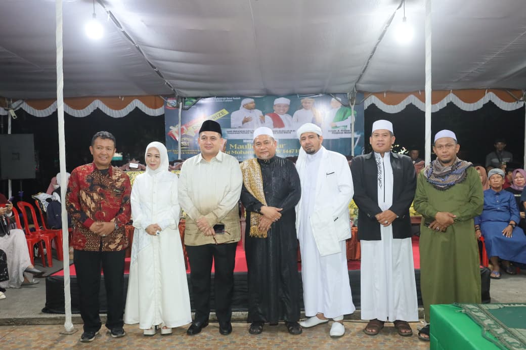 SudutMakassar.id, MAKASSAR,— Wali Kota Makassar, Munafri Arifuddin, menghadiri Maulid Akbar Nabi Besar Muhammad SAW 1447 H yang digelar oleh Majelis Zikir dan Muhasabah Darut Taubah di pelataran Masjid Darut Taubah, Jalan Taman Makam Pahlawan, Kecamatan Panakkukang, Minggu malam (26/10/2025).