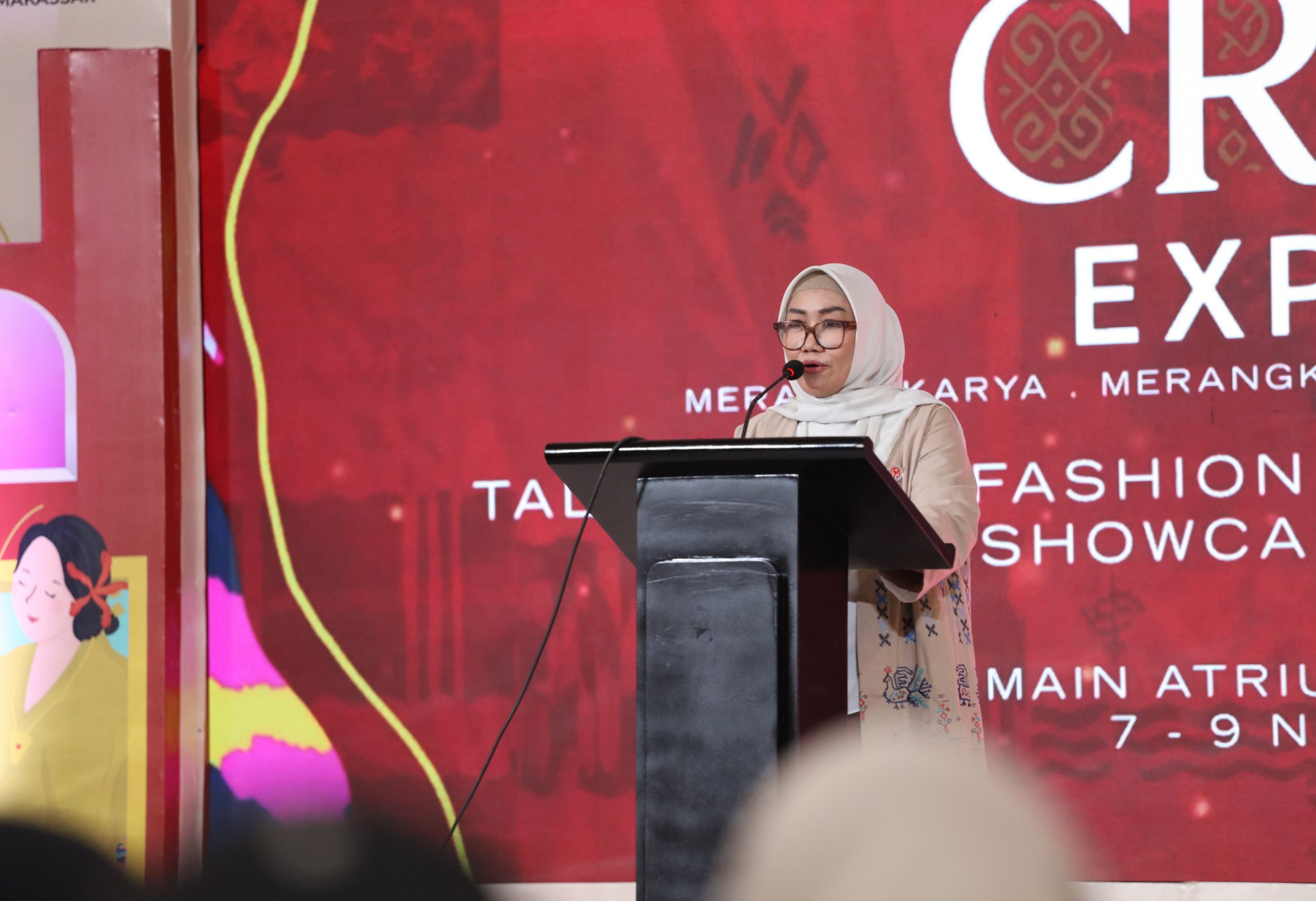 Dalam kegiatan tersebut, Kepala Dinas Koperasi dan UMKM Kota Makassar, Arlin Ariesta, hadir sebagai narasumber pertama dengan materi “Kiat Menjadi Perajin Berkelas.”
