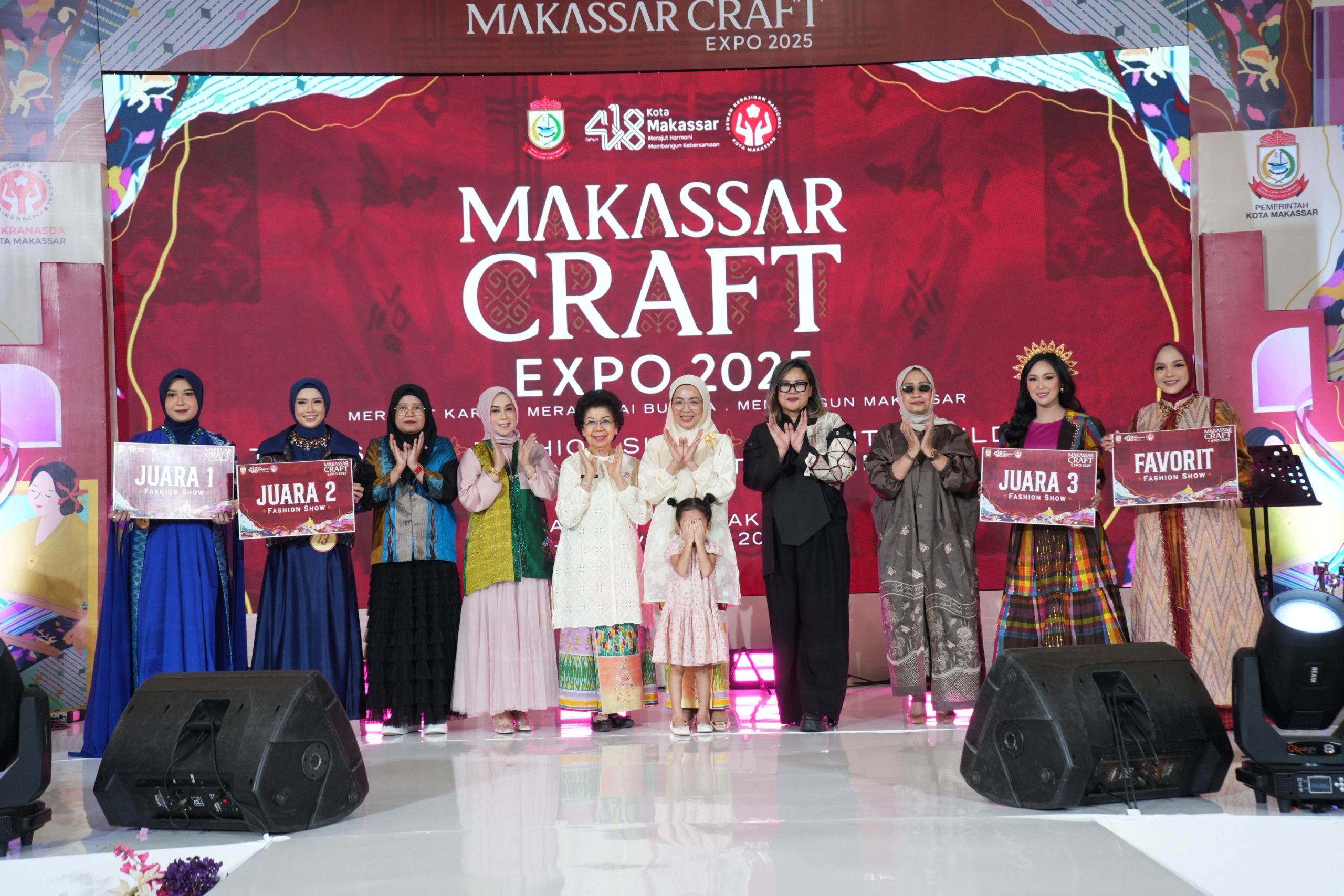 Penampilan para peserta yang anggun disambut tepuk tangan penonton yang memadati area utama Makassar Craft Expo 2025.