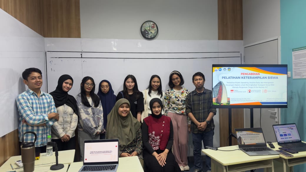 SudutMakassar.id, MAKASSAR – Universitas Negeri Makassar (UNM) berkolaborasi dengan Universitas Muslim Indonesia (UMI) untuk melaksanakan pelatihan public speaking, analisis data, dan manajemen keuangan digital. Pelatihan ini berlangsung di Learning Center Brain Academy Makassar dan diikuti oleh siswa dari berbagai SMA. Program tersebut bertujuan meningkatkan kompetensi siswa agar mampu menghadapi tantangan akademik dan perkembangan teknologi di era Society 5.0.