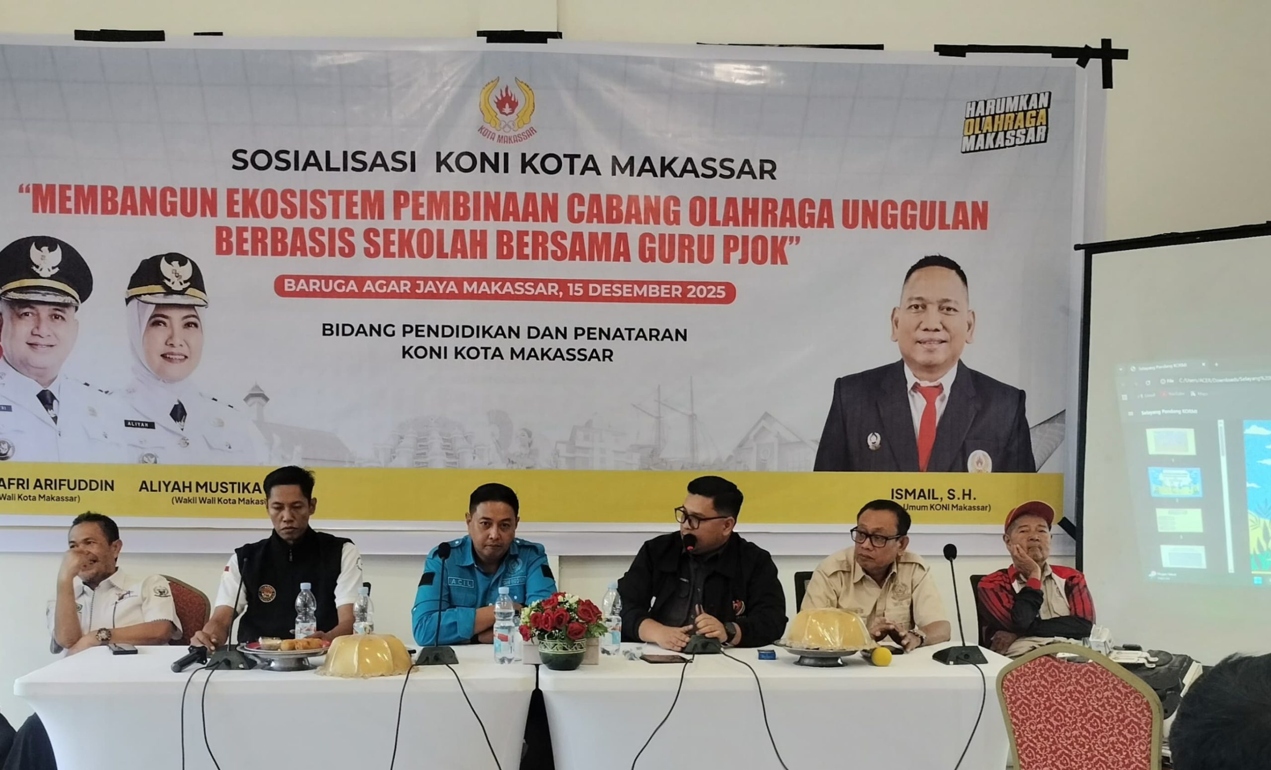 SudutMakassar.id, MAKASSAR – Komite Olahraga Nasional Indonesia (KONI) Kota Makassar menggandeng Komite Olahraga Rekreasi Masyarakat Indonesia (KORMI) Kota Makassar dalam kegiatan sosialisasi cabang olahraga kepada Guru Pendidikan Jasmani, Olahraga, dan Kesehatan (PJOK) Sekolah Dasar se-Kota Makassar. Kegiatan ini berlangsung di Baruga Agar Jaya KONI Kota Makassar, Jalan Kerung-Kerung Eks THR, Senin, 15 Desember 2025.