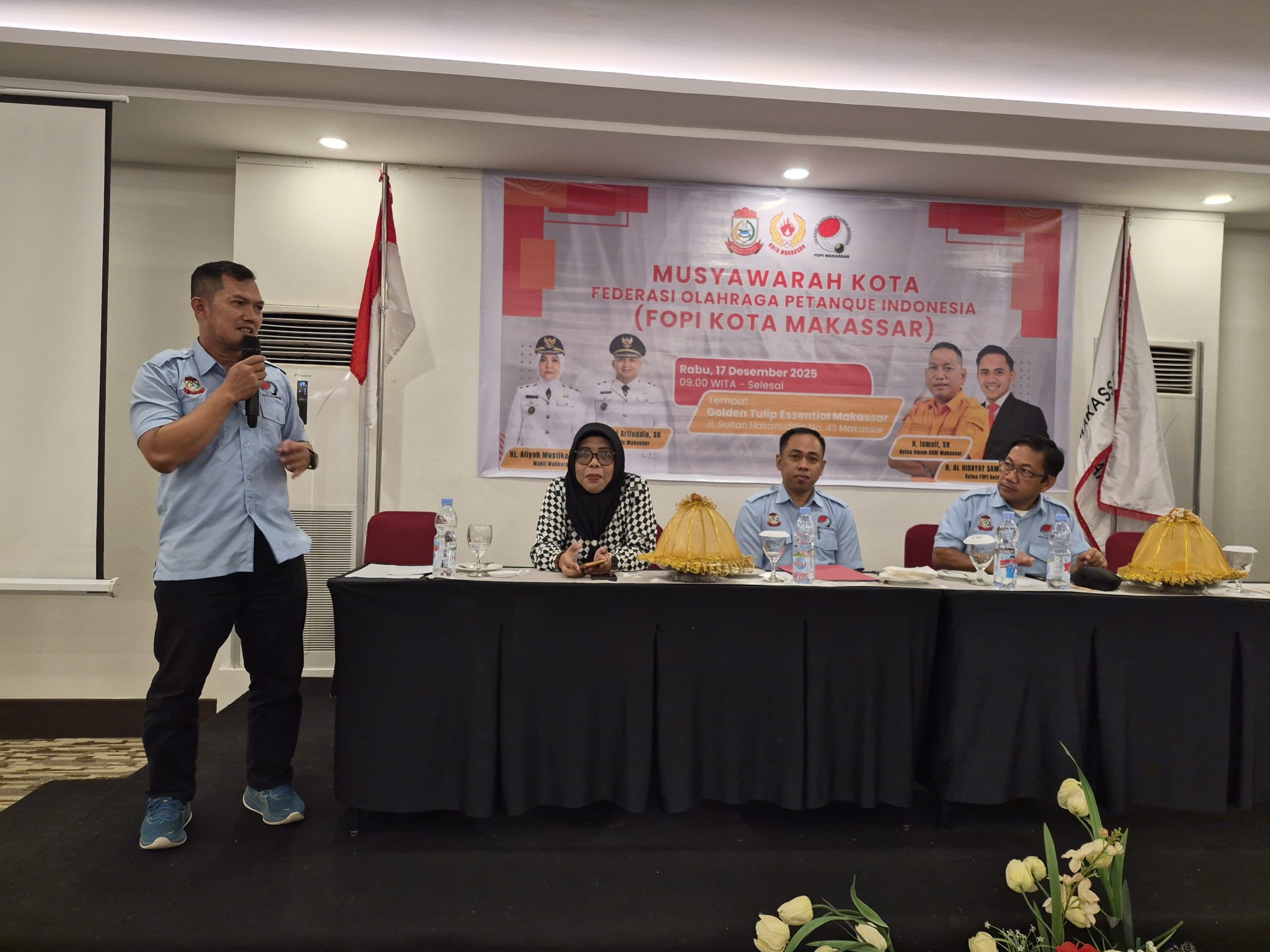 SudutMakassar.id, MAKASSAR – Musyawarah Kota Federasi Olahraga Petanque Indonesia (FOPI) Kota Makassar Tahun 2025 resmi digelar di Hotel Golden Tulip Essential, Jalan Sultan Hasanuddin, Makassar, Rabu (17/12/2025). Kegiatan ini menjadi forum strategis dalam penguatan organisasi serta regenerasi kepemimpinan FOPI Kota Makassar.