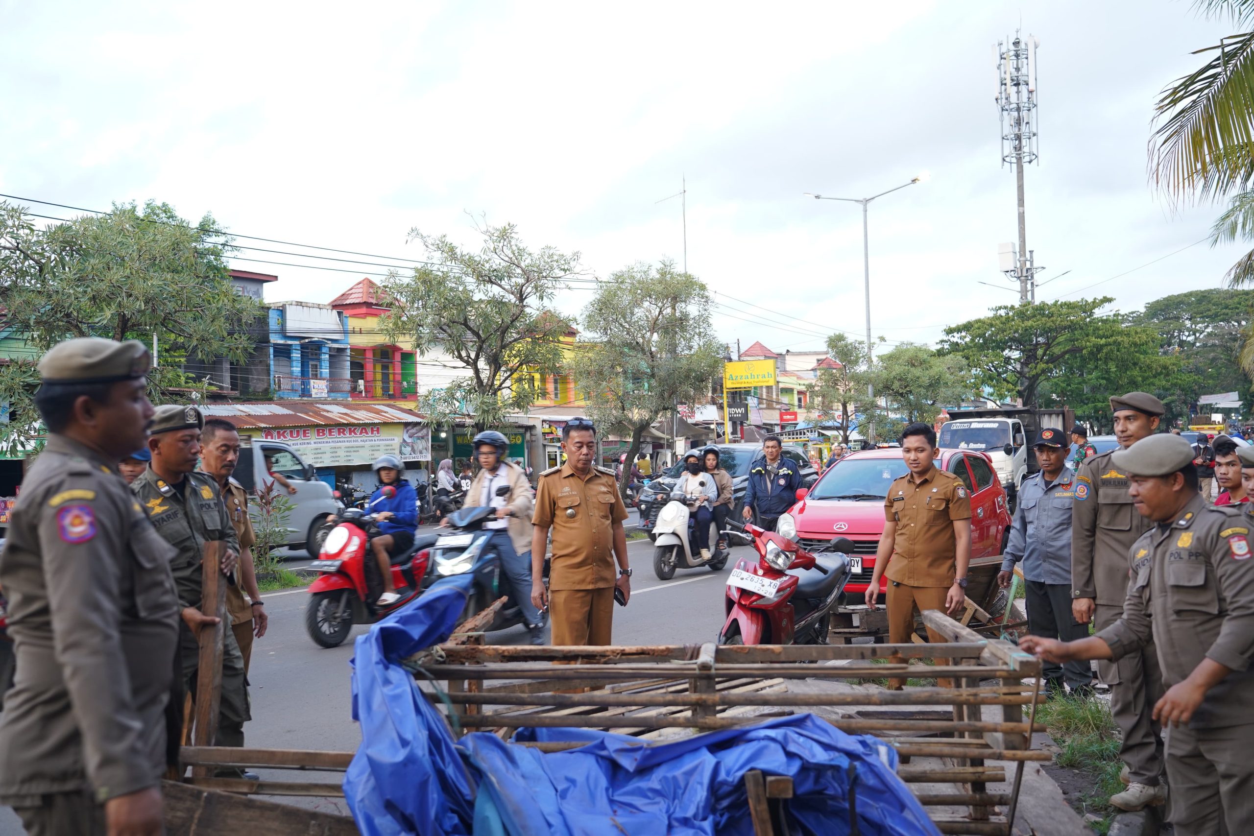 Penertiban dipimpin langsung oleh Camat Biringkanaya Juliaman, didampingi Lurah Sudiang Raya Hary Faizal, Kepala Seksi Ketenteraman dan Ketertiban Kecamatan Biringkanaya Ady Mulyadi Jacub, serta melibatkan Kapolsek dan Danramil Biringkanaya, personel Satpol PP BKO kecamatan, Satlinmas, dan staf kelurahan.